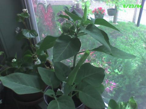 The plant never made it out into the yard. Two new flowers forming and one old seed pod. Will save seeds for next year.
