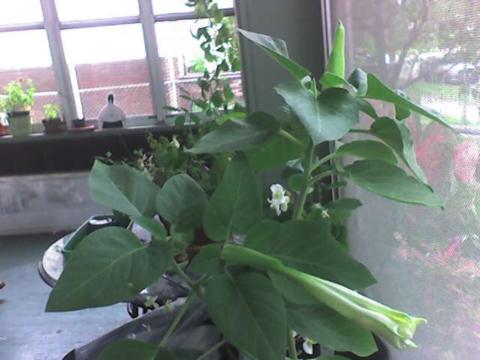 I CAN LOOK ON THE PORCH FROM HERE AND SEE THAT THE MOONFLOWER IS OPEN. I GUESS IT WQAS NOT TOO BRIGHT OUTSDE.